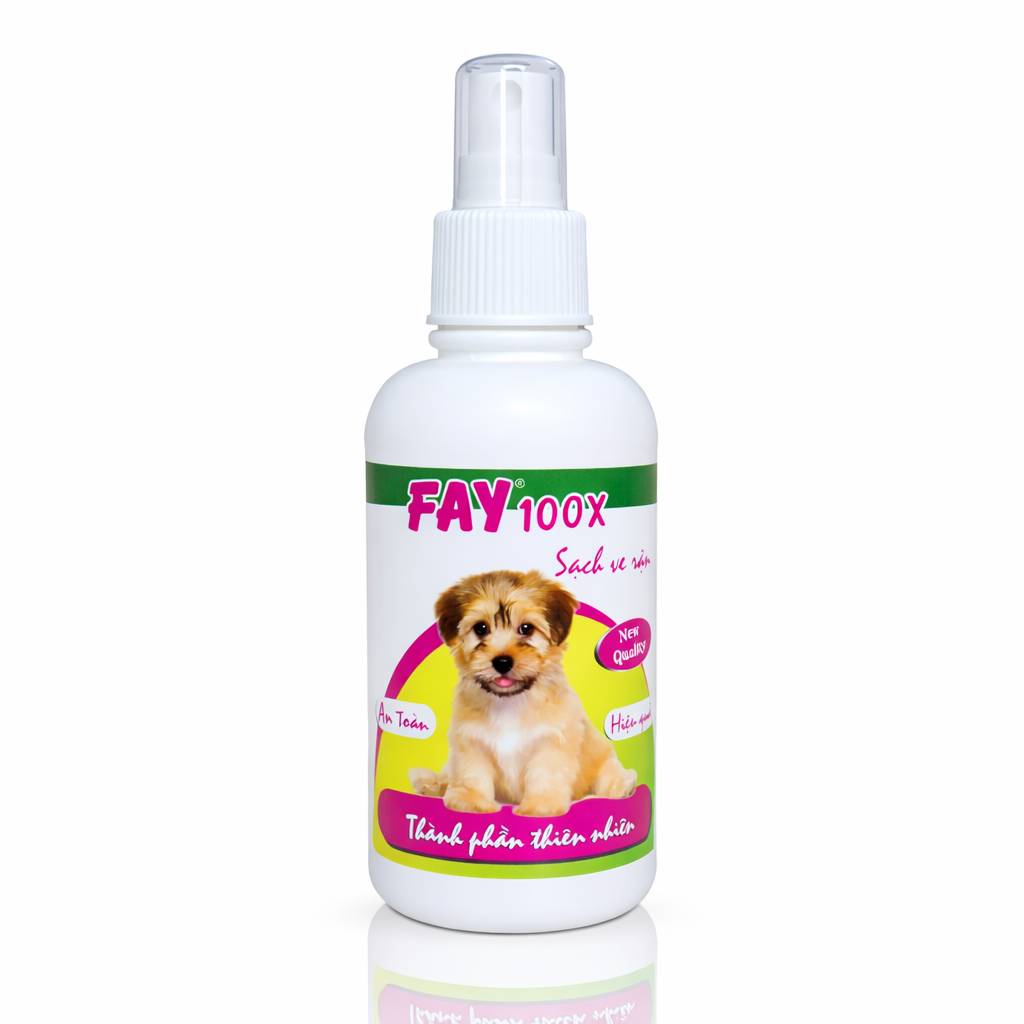 Tinh dầu Fay 100X là sản phẩm chuyên dùng cho thú cưng, với thành phần từ các tinh dầu thiên nhiên: Chiết xuất Đinh Hương (Clove Bud Extract), Cajeput Oil (Tinh dầu Tràm) giúp hỗ trợ làm sạch ve, rận, bọ chét... trên mình thú.